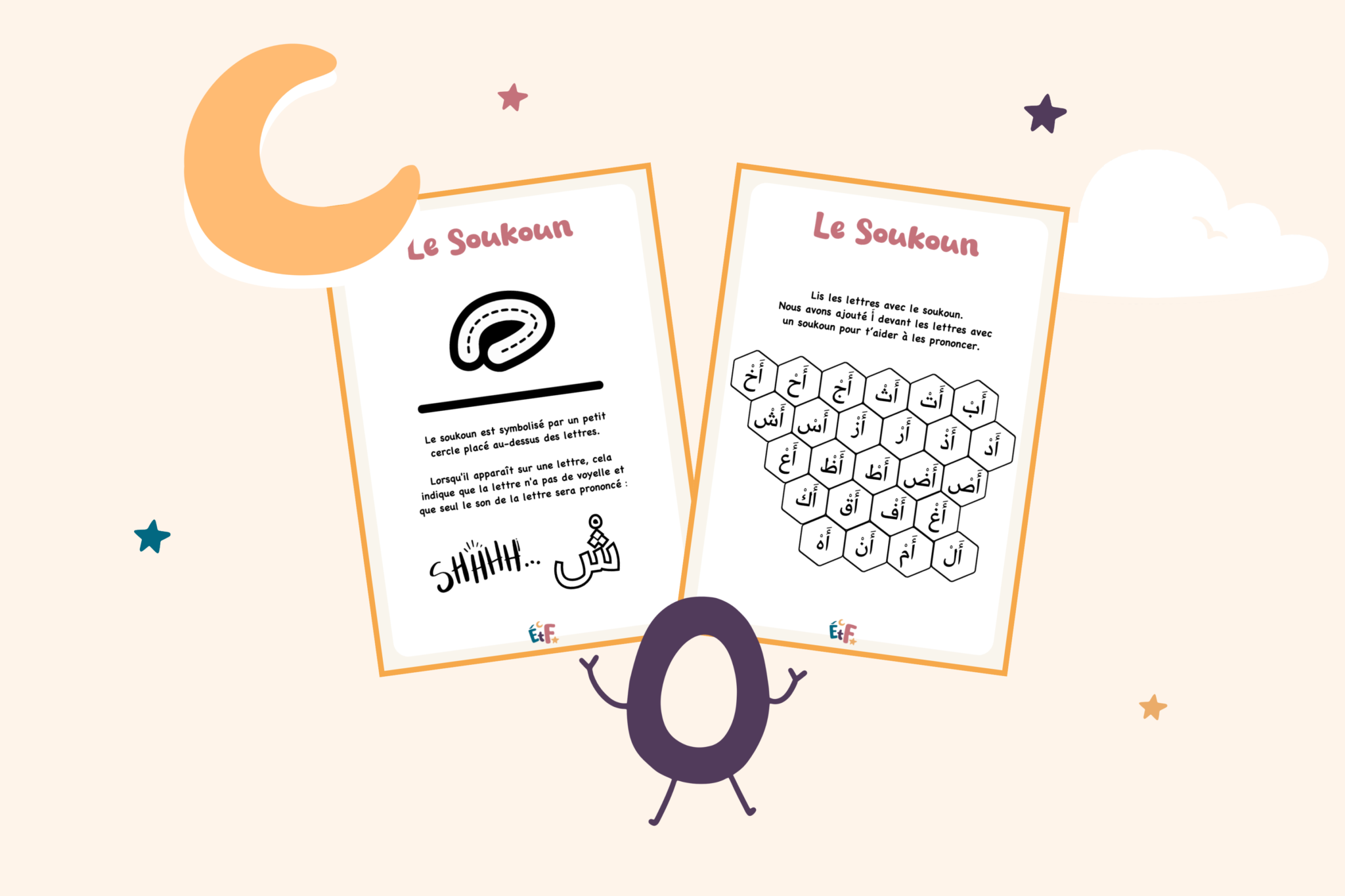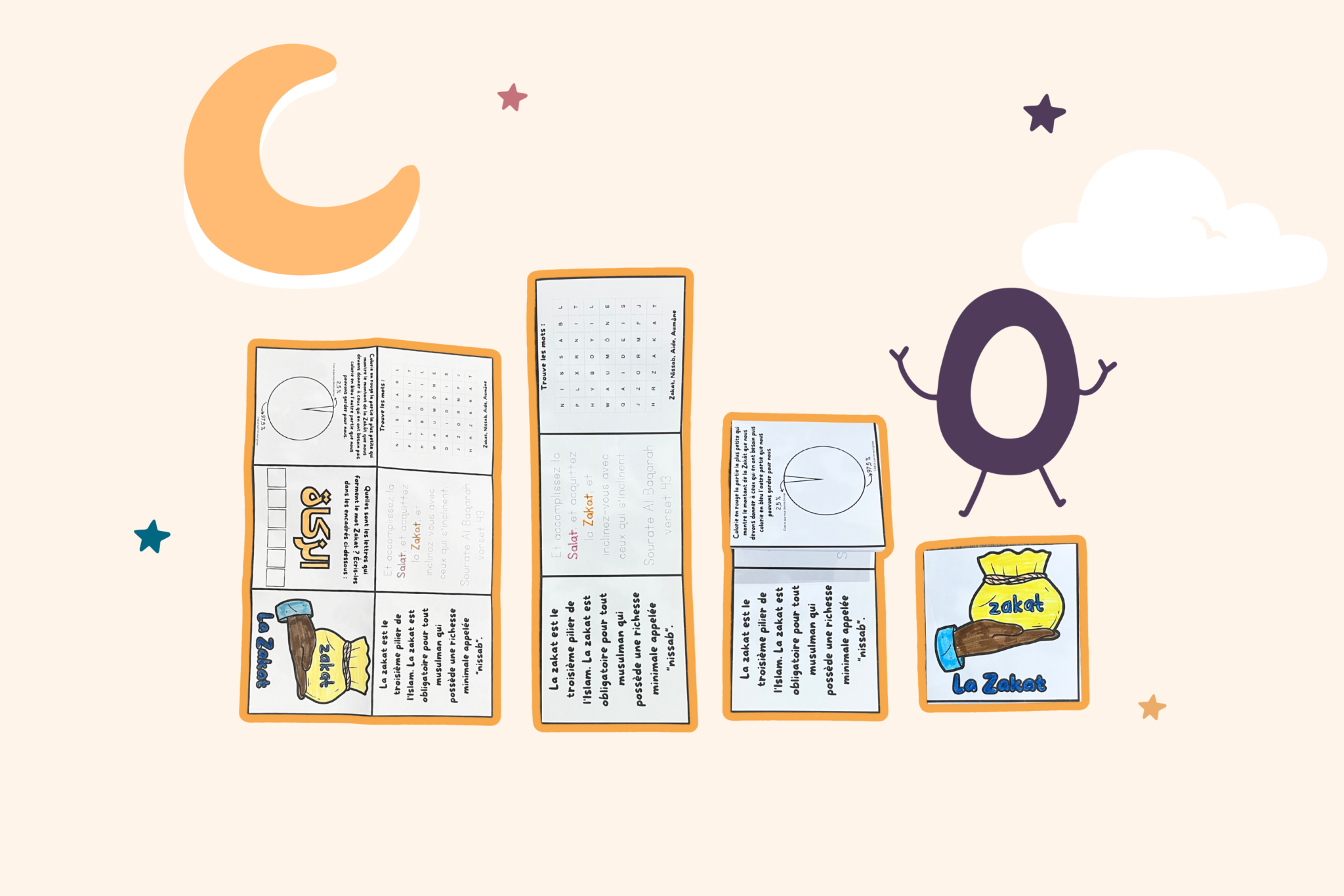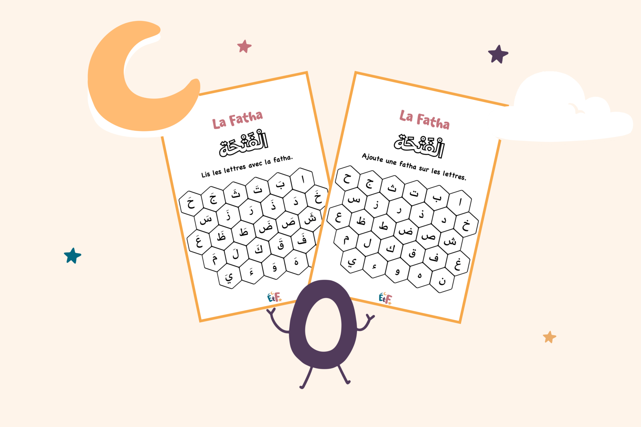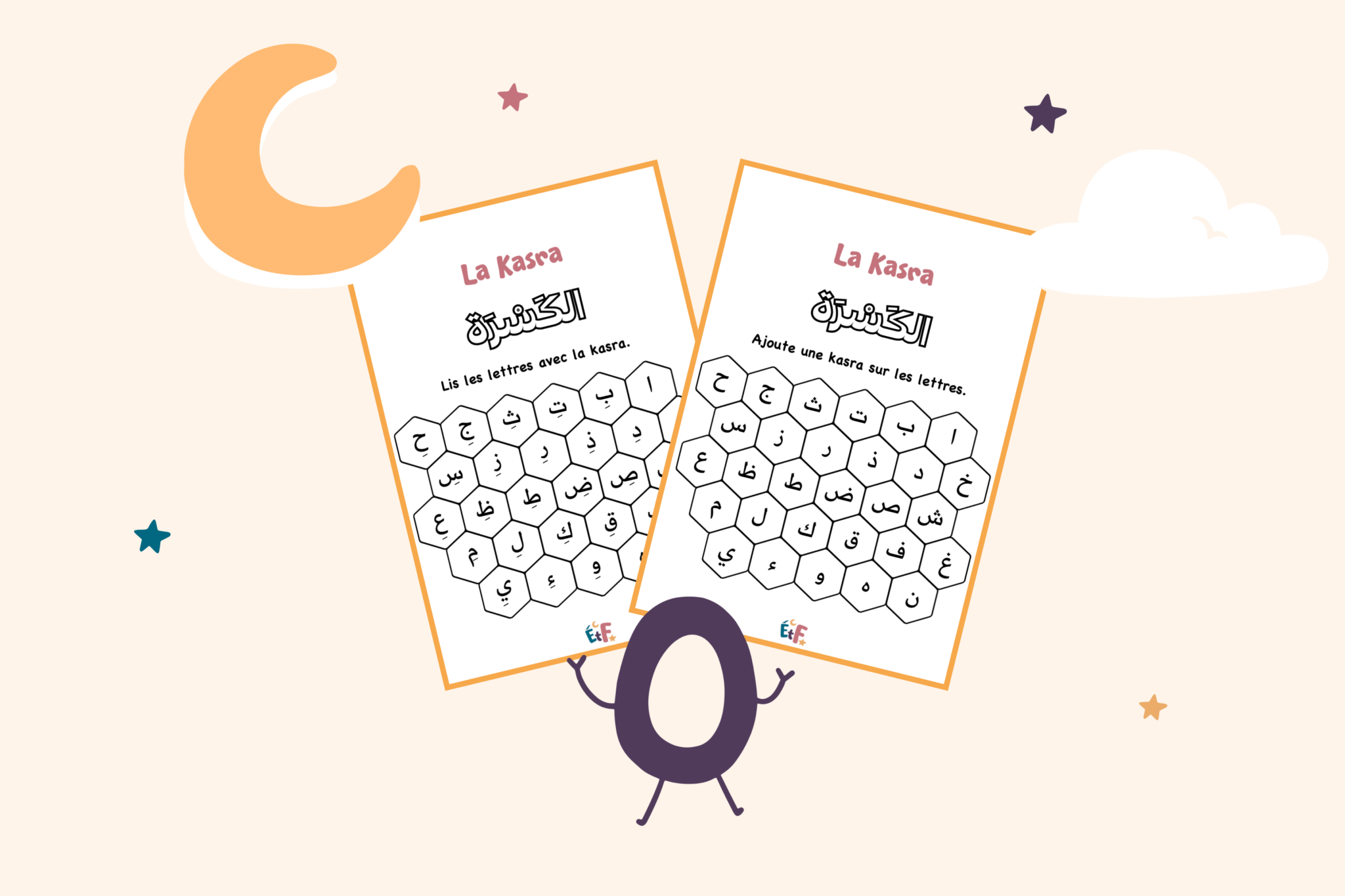 Des cartes permettant aux enfants de s’exercer à tracer les lettres arabes.