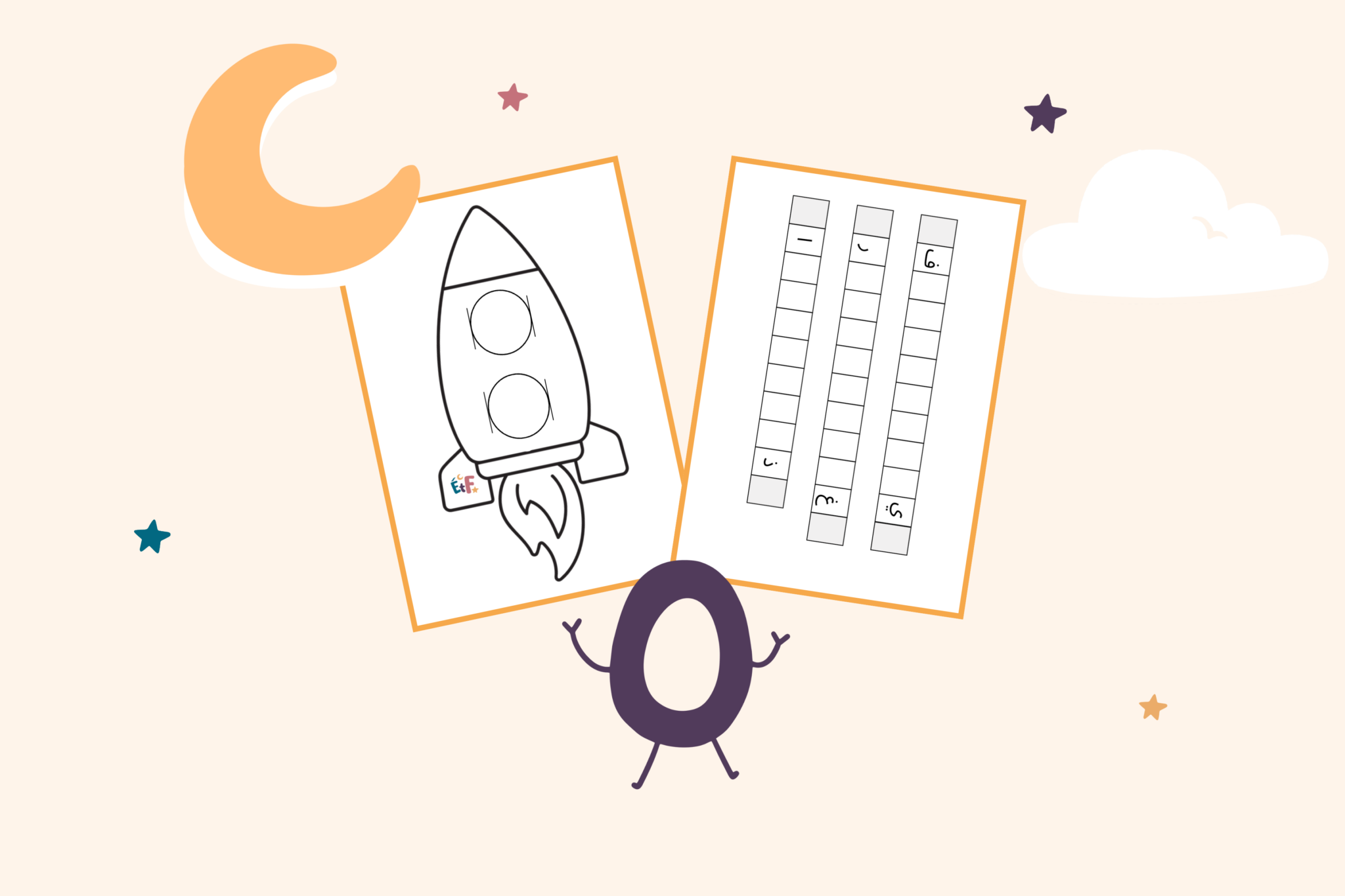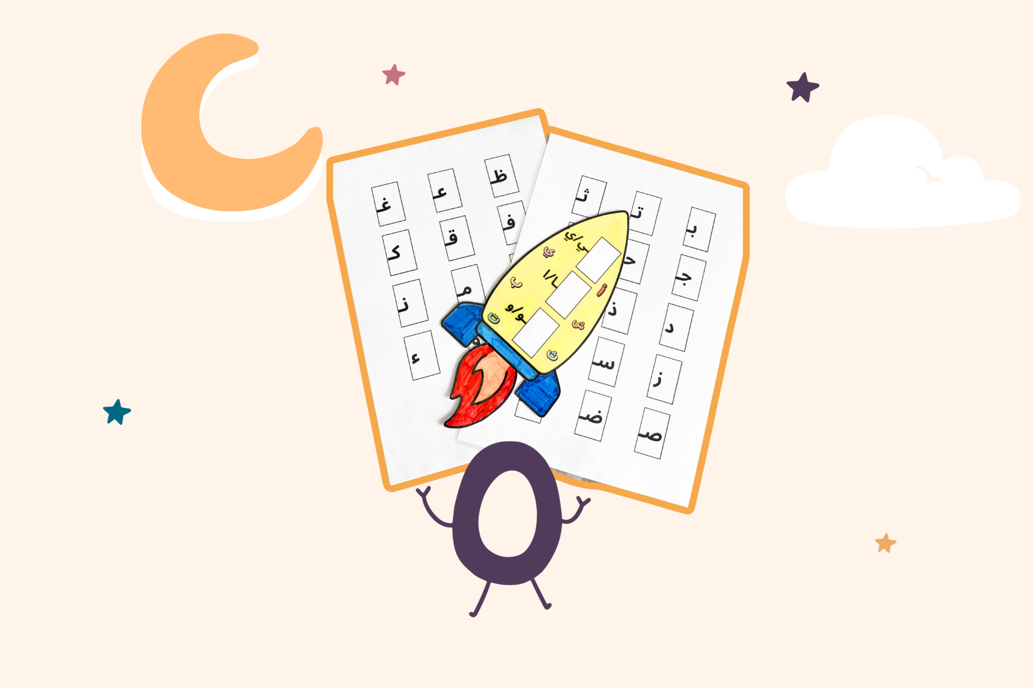 Identifie les lettres arabes en utilisant une fusée comme support visuel.