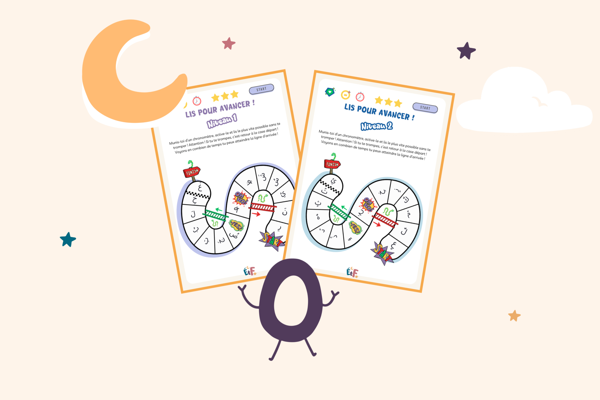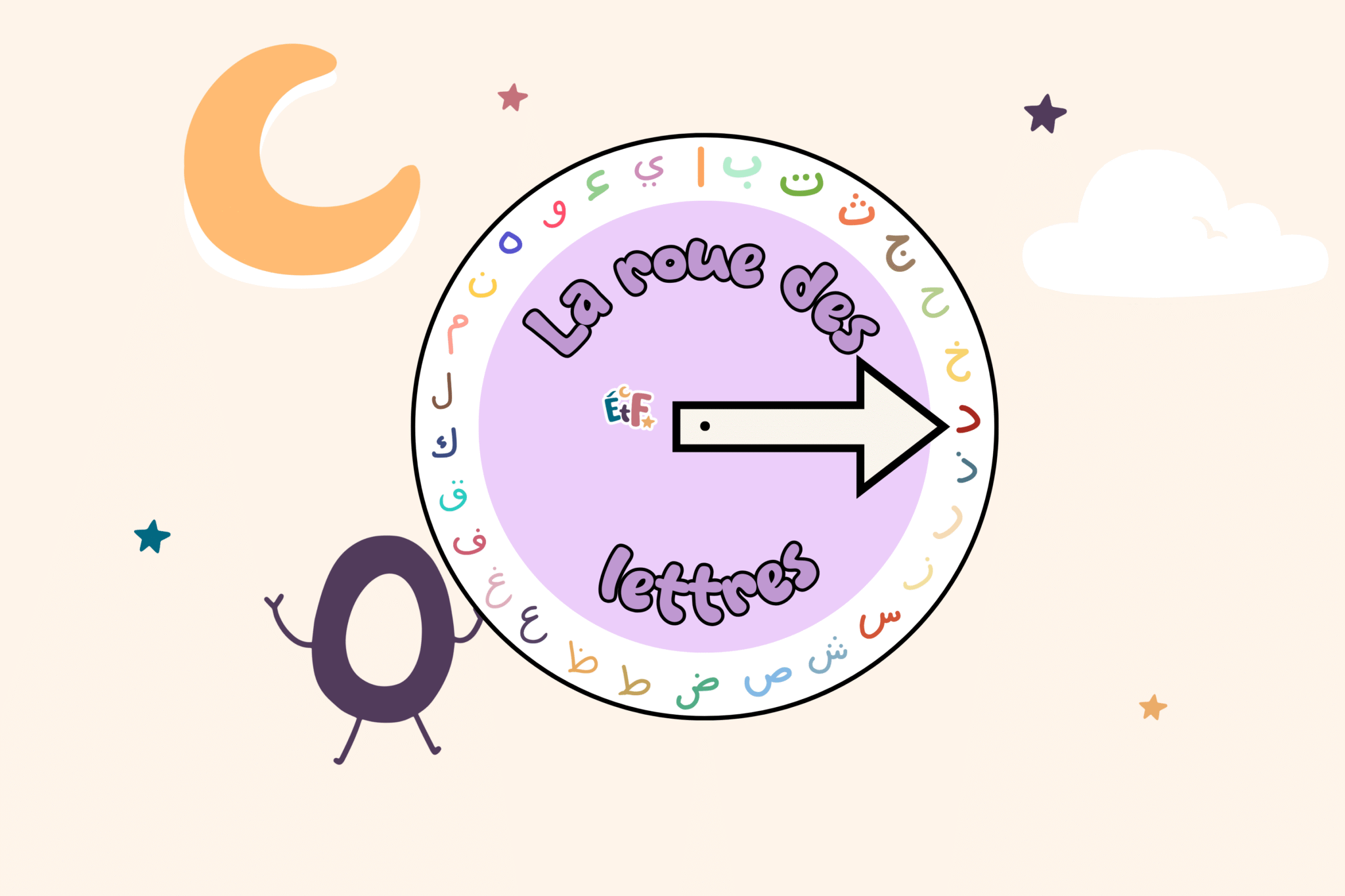 Un jeu de vitesse où les enfants doivent reconnaître les lettres arabes le plus rapidement possible.